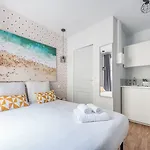Eine Küchenzeile ist mit einem Kühlschrank und einem Kochfeld ausgestattet und steht den Gästen zur Verfügung. Es ist in einer 250 Meter Entfernung vom Bahnhof Auber.
